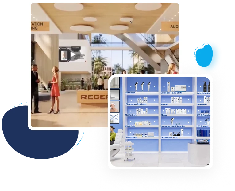 These experiences place users inside the learning or product journey—whether that means stepping into a replicated training facility, a conceptual learning academy, or a 360° interactive product environment.